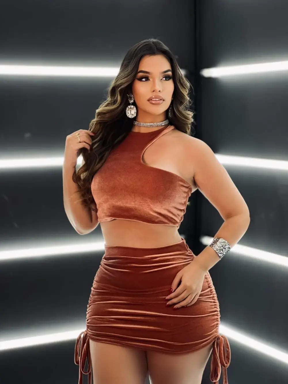 Moderno e confortável, esse conjunto em veludo realça o corpo com estilo. Possui bojo para mais sustentação e veste até o tamanho 42 graças à sua elasticidade. Ideal para festas, baladas e composições elegantes